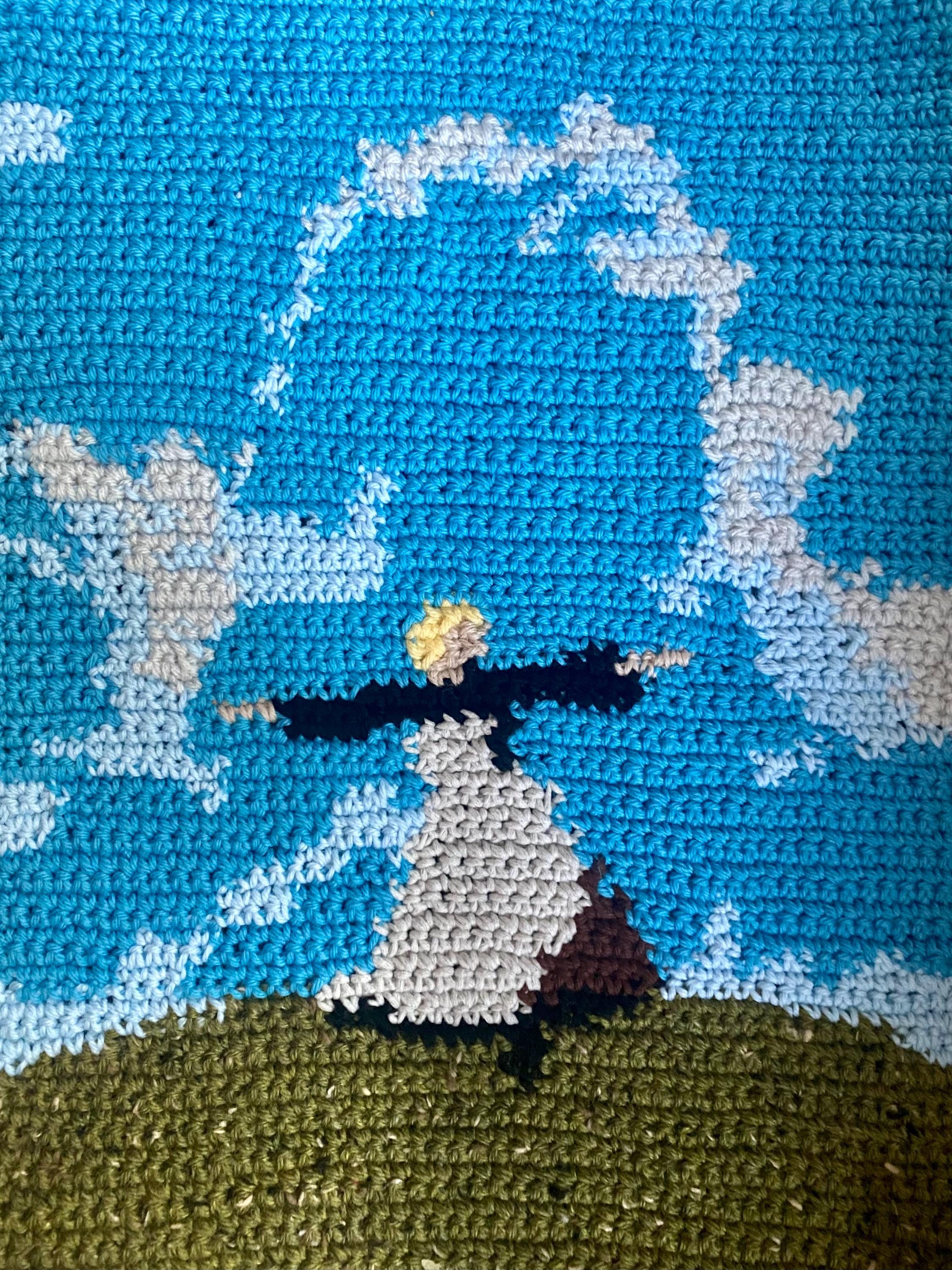 Mixed-up afghan with skulls