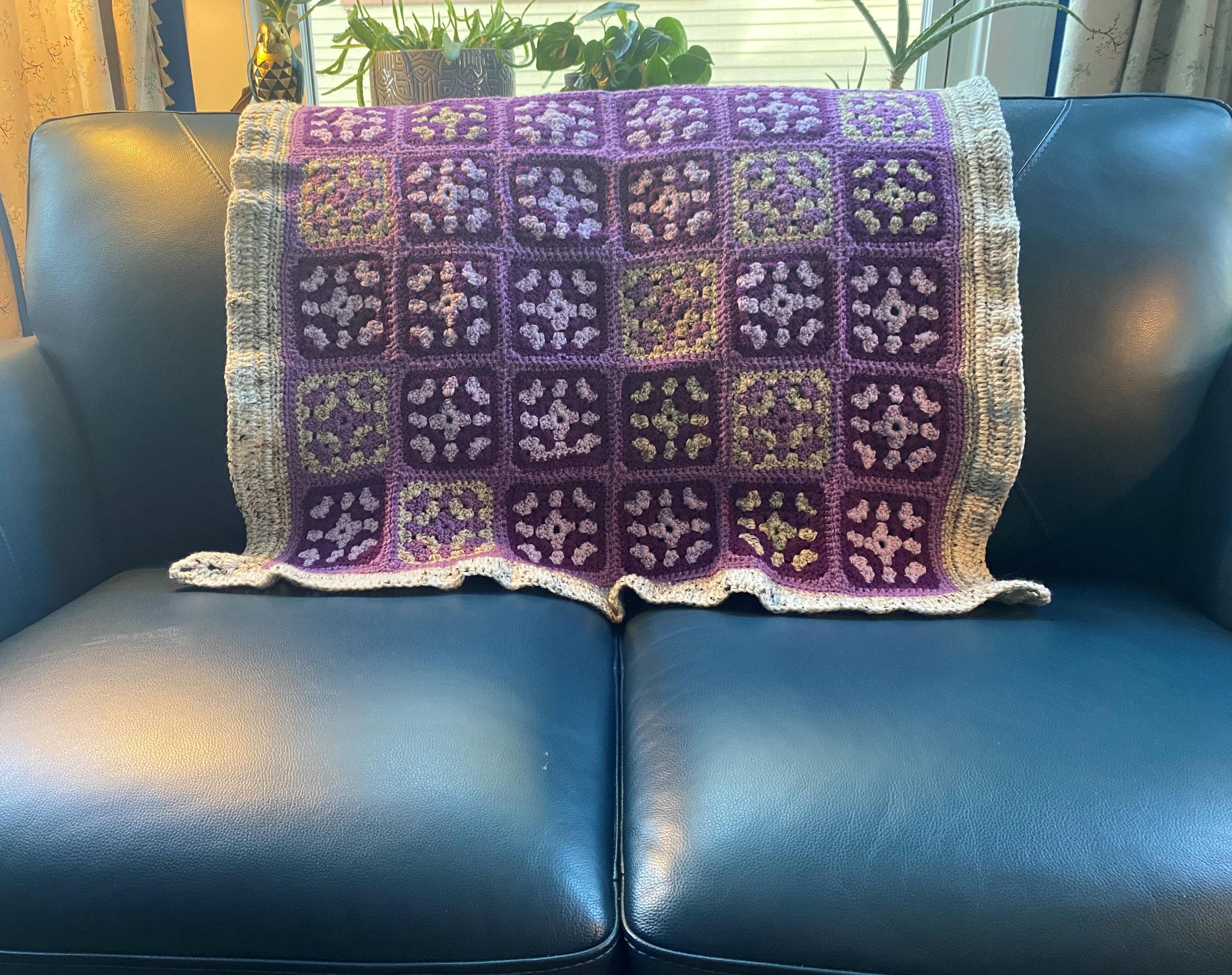 Wrap your little one in warmth and charm with this adorable Granny Square Mixed Up Baby Blanket. Lovingly handmade with a delightful mix of purples, this baby afghan features classic granny squares framed by a thick, cozy border—perfect for tummy time, stroller rides, or snuggling in a car seat.